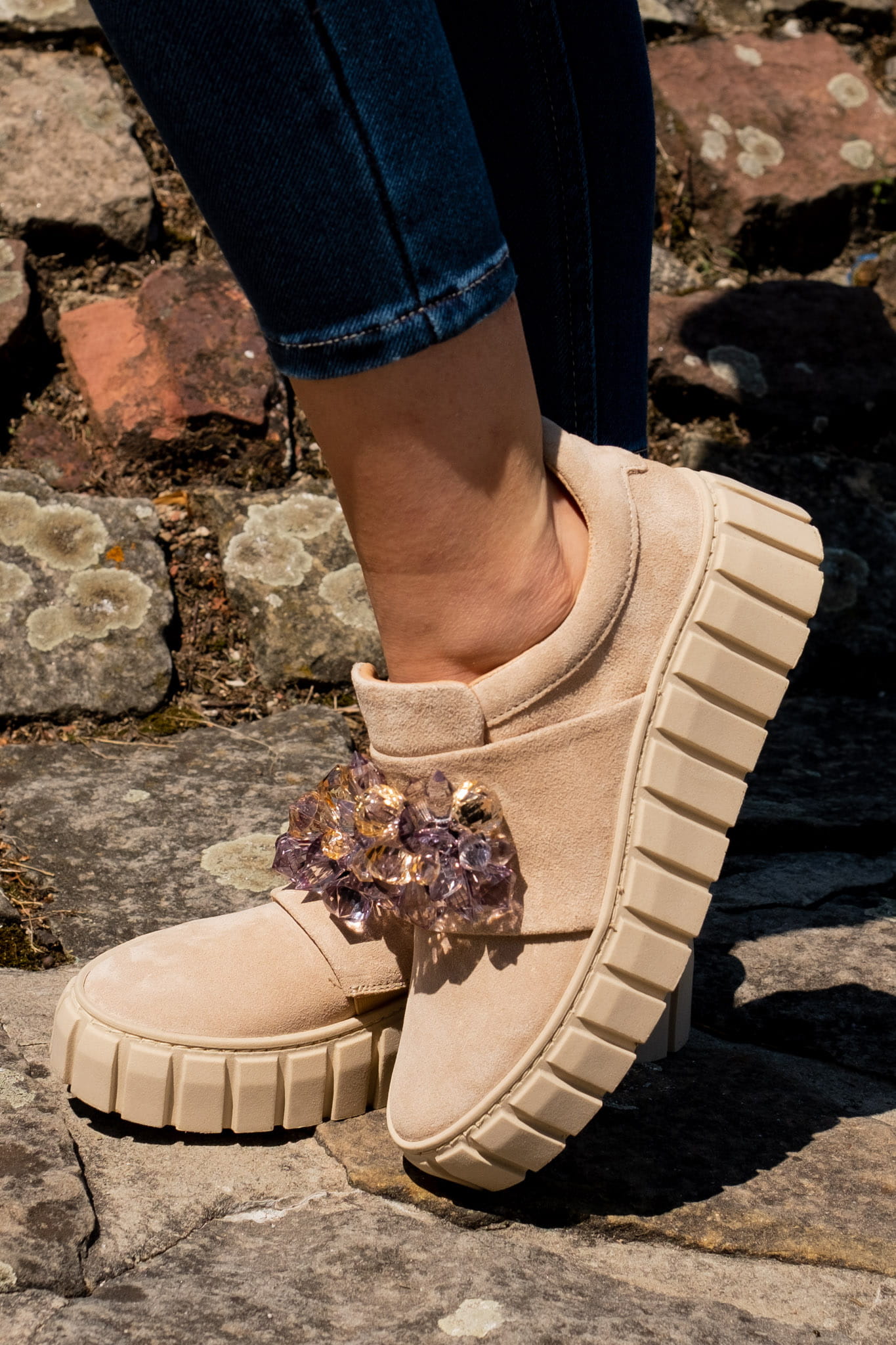 Bardzo modne buty z linii Chloe. Nietypowy wygląd podeszwy został połączony z prostą cholewką ozdobioną przepięknymi kamieniami. Model Claire łączy w sobie cudowny wygląd i wygodę. Ozdoba pięknymi kolorami swoich kamieni przyciąga wzrok każdego przechodnia. Obok takiego buta nie można przejść obojętnie.