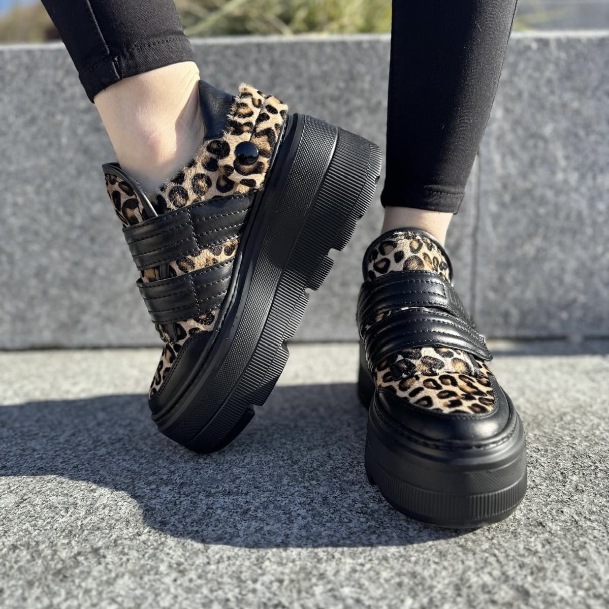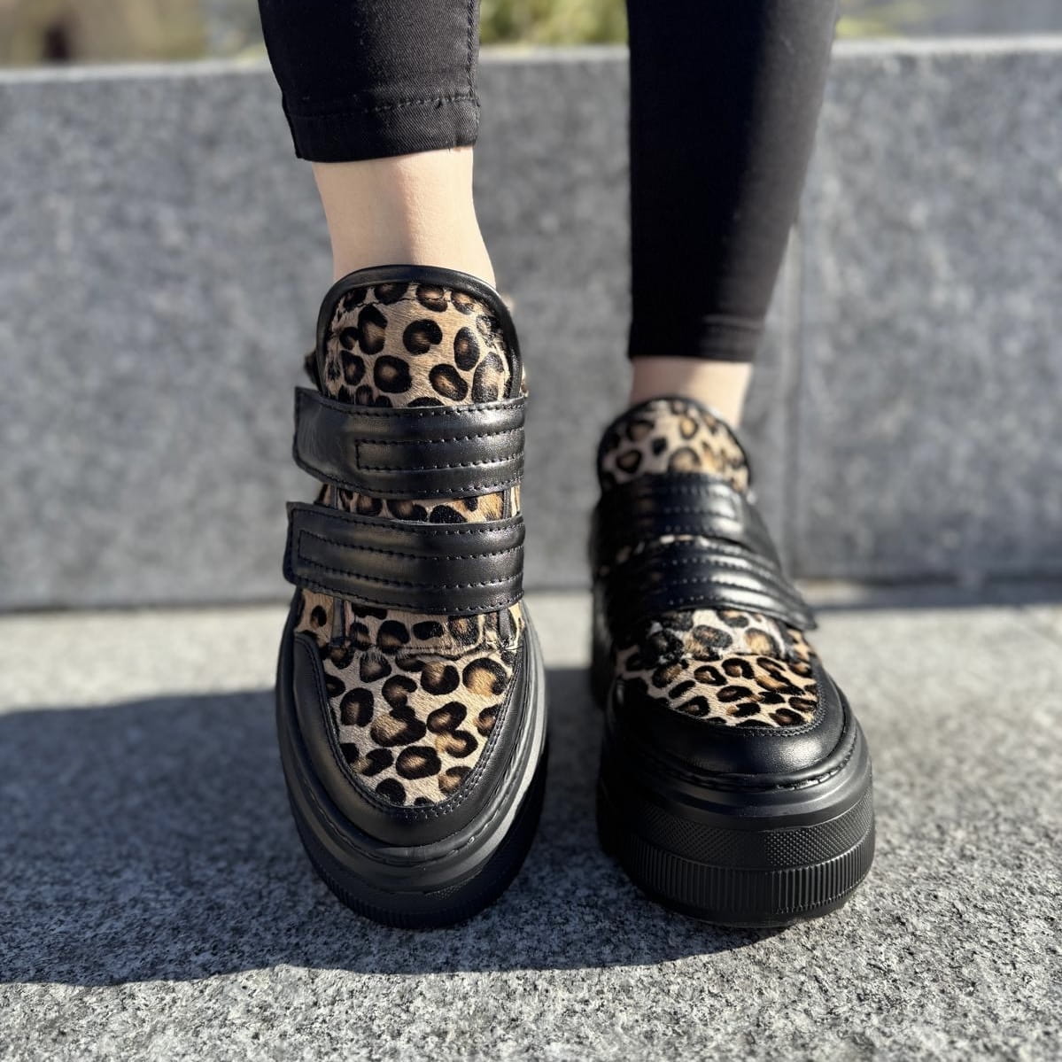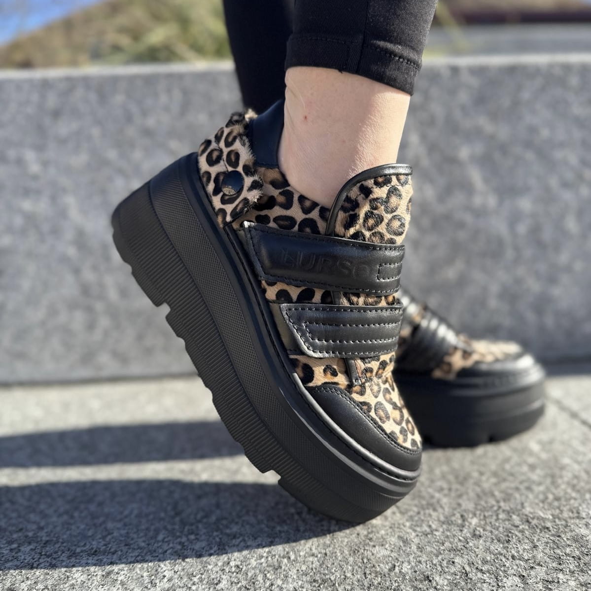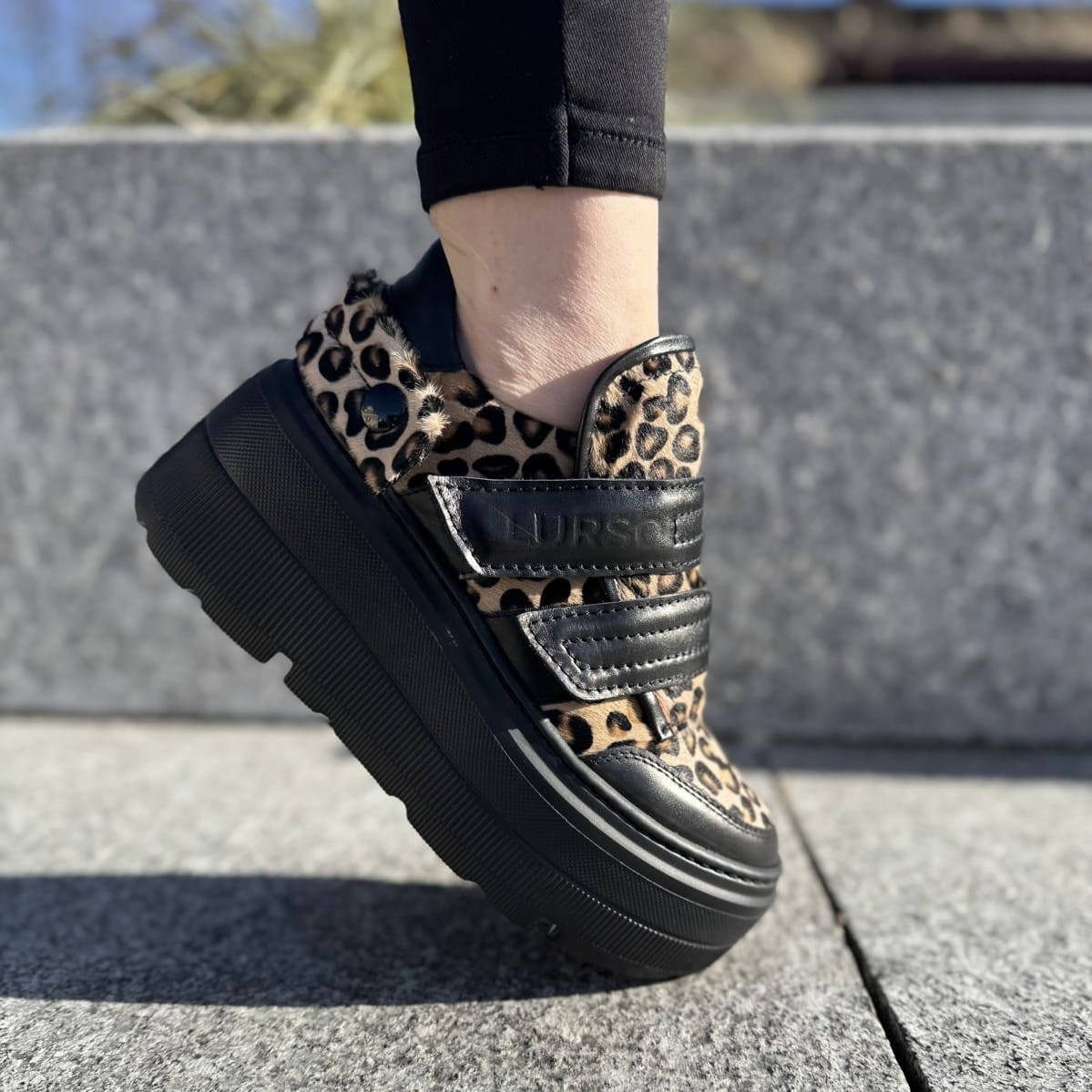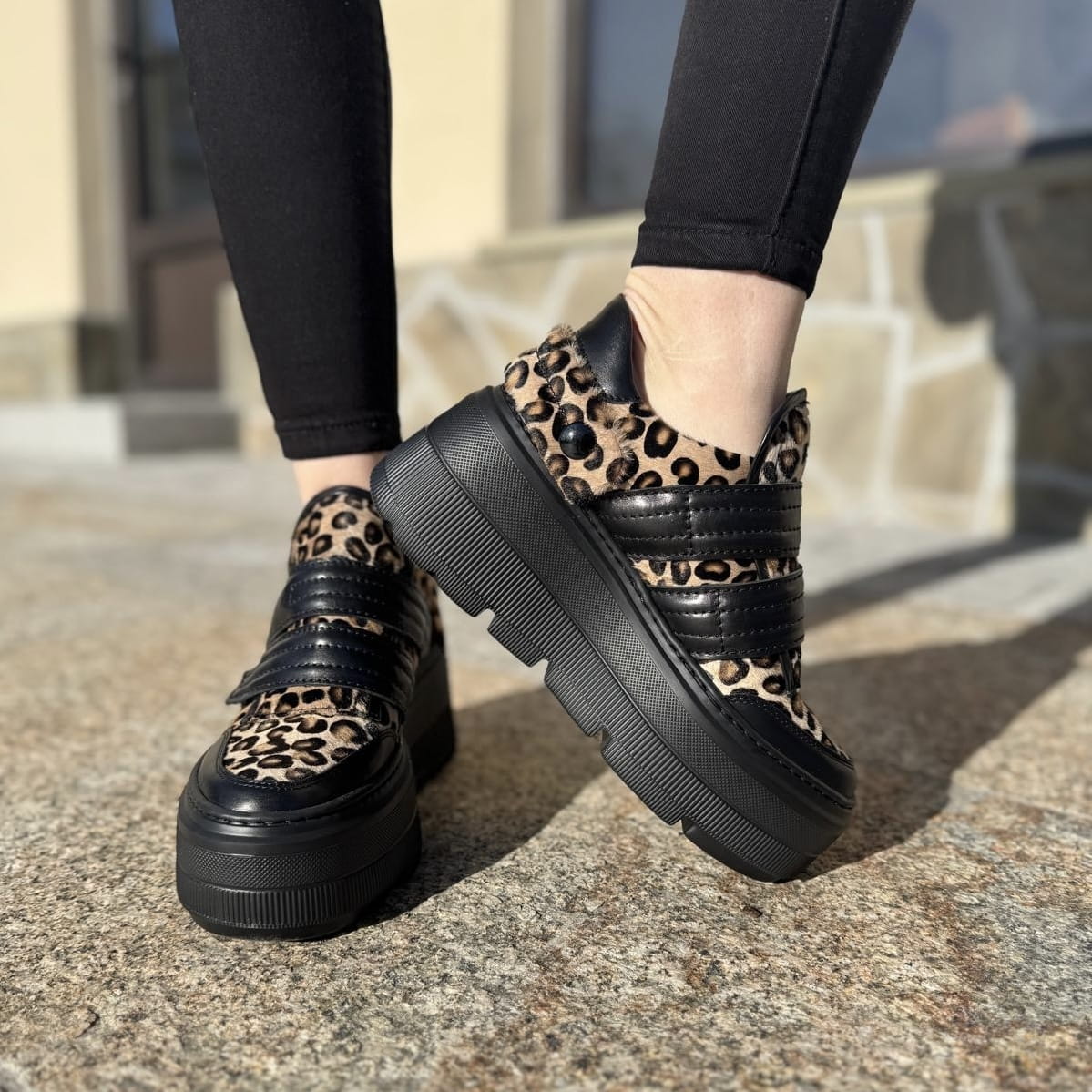 Sneakersy Damskie w panterkę LURSO na podwyższonej podeszwie FORINO LEOPARD skóra naturalna
