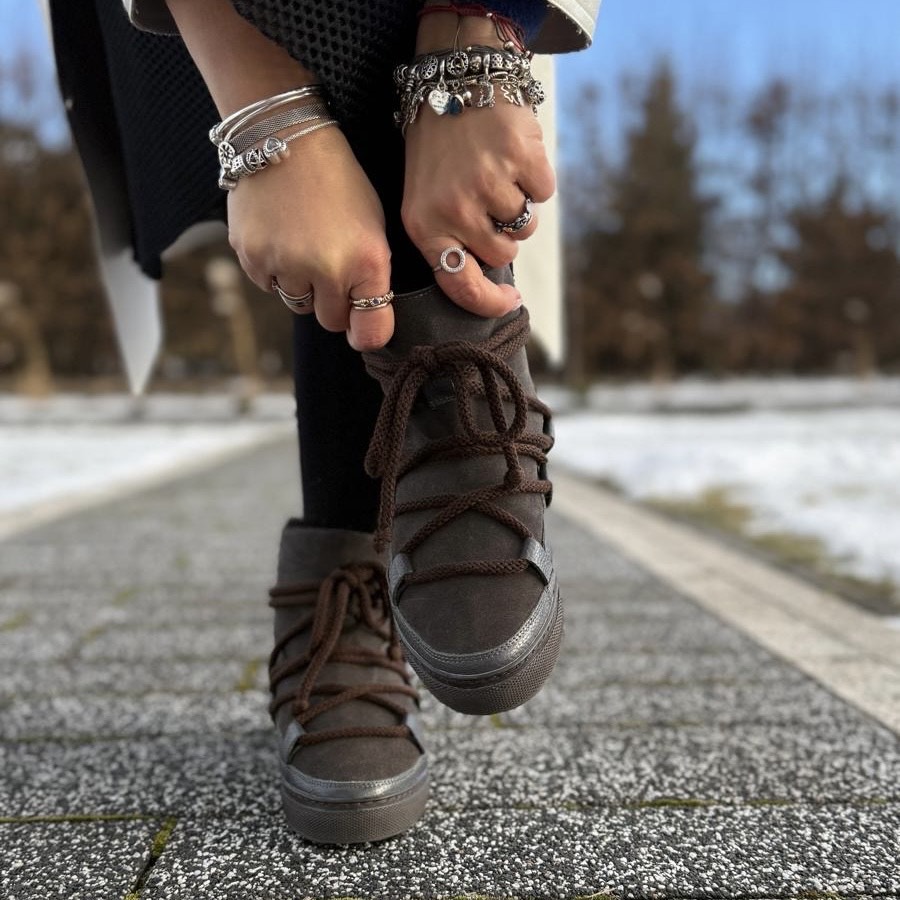 Model Hannah to mega ciepły śniegowiec. Cudnie skrojona cholewka połączona z miękką trampkową podeszwą. Ocieplenie w środku wykonane z barana naturalnego daje użytkownikowi gwarancję zachowania ciepła.