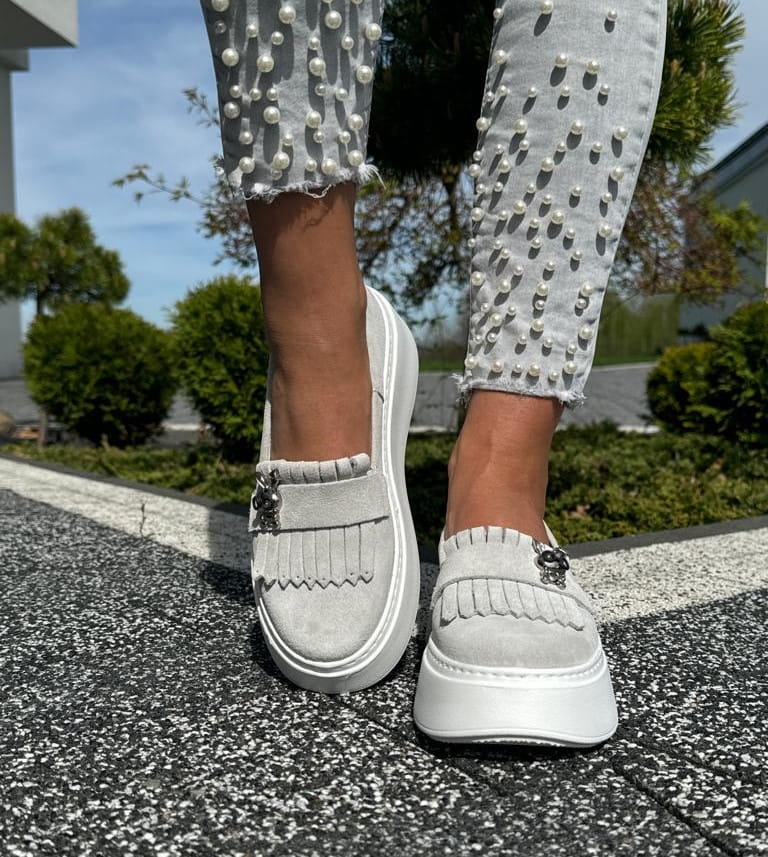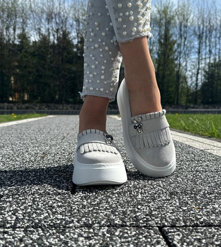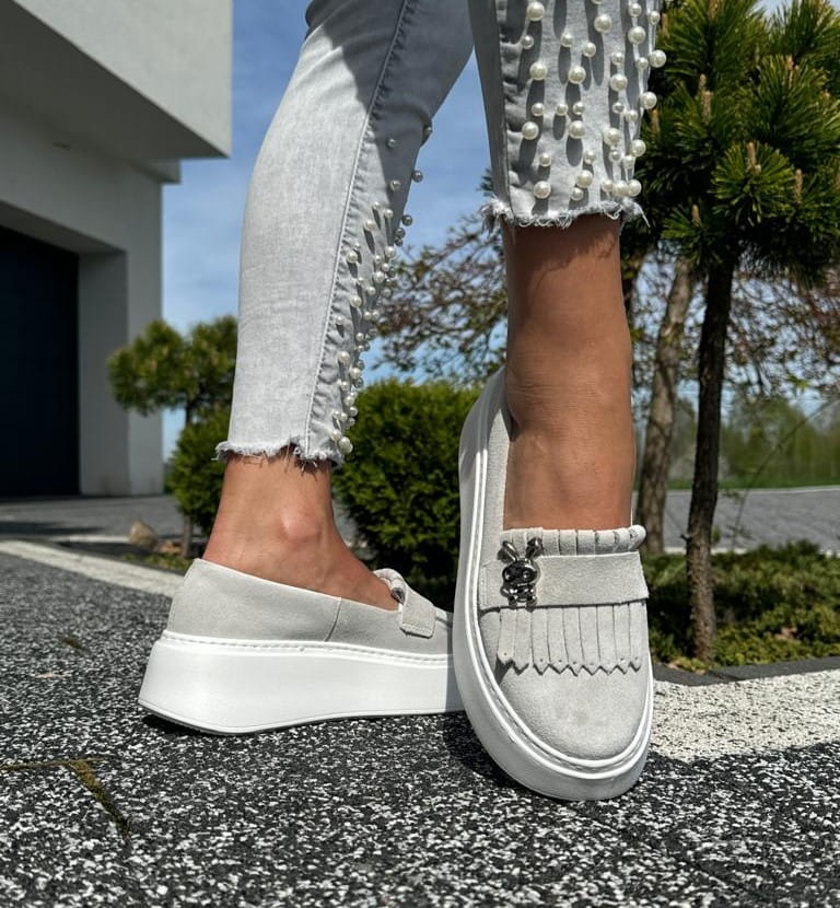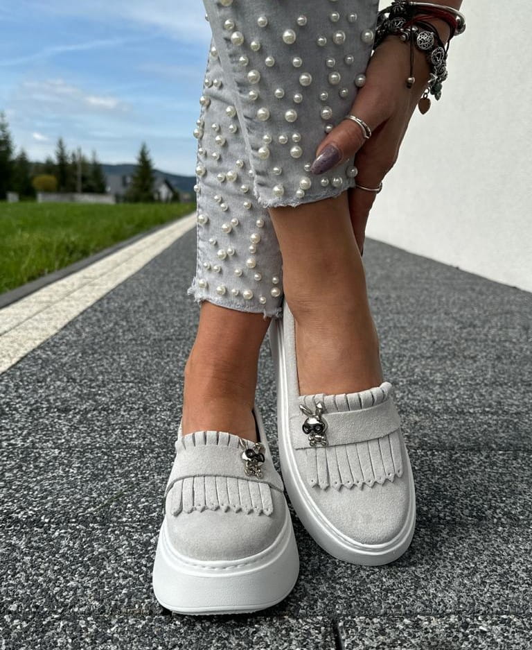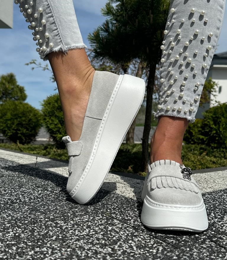 Szare Baleriny Damskie LURSO model BELLUNO LIGHT GREY