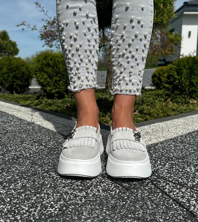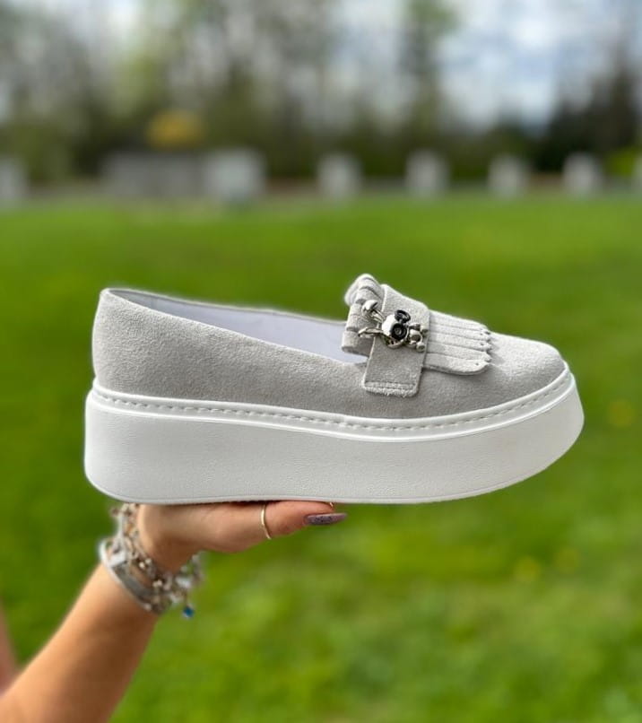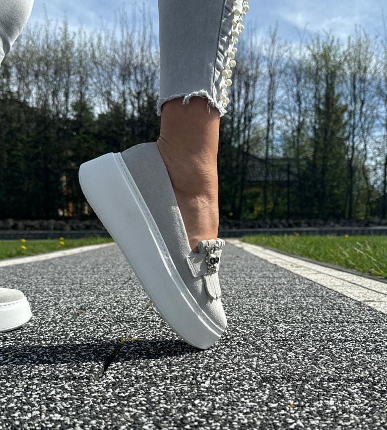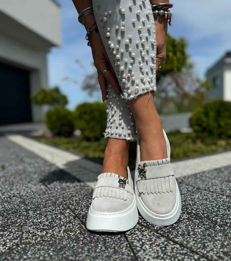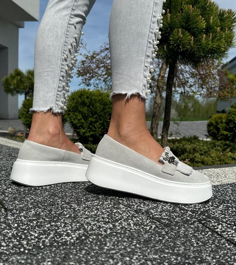 Szare Baleriny Damskie LURSO model BELLUNO LIGHT GREY