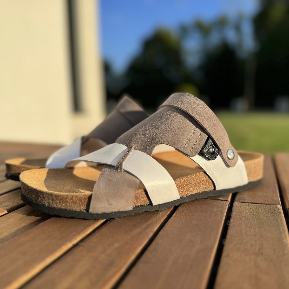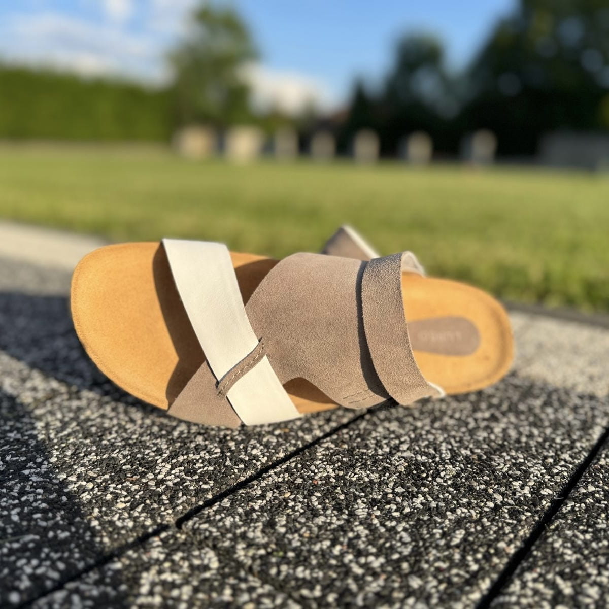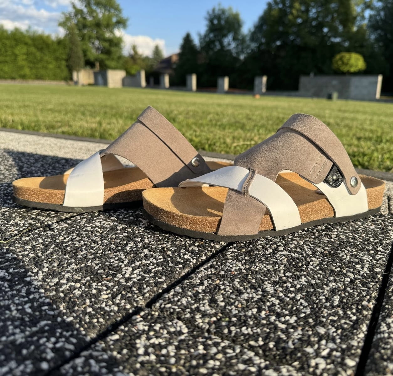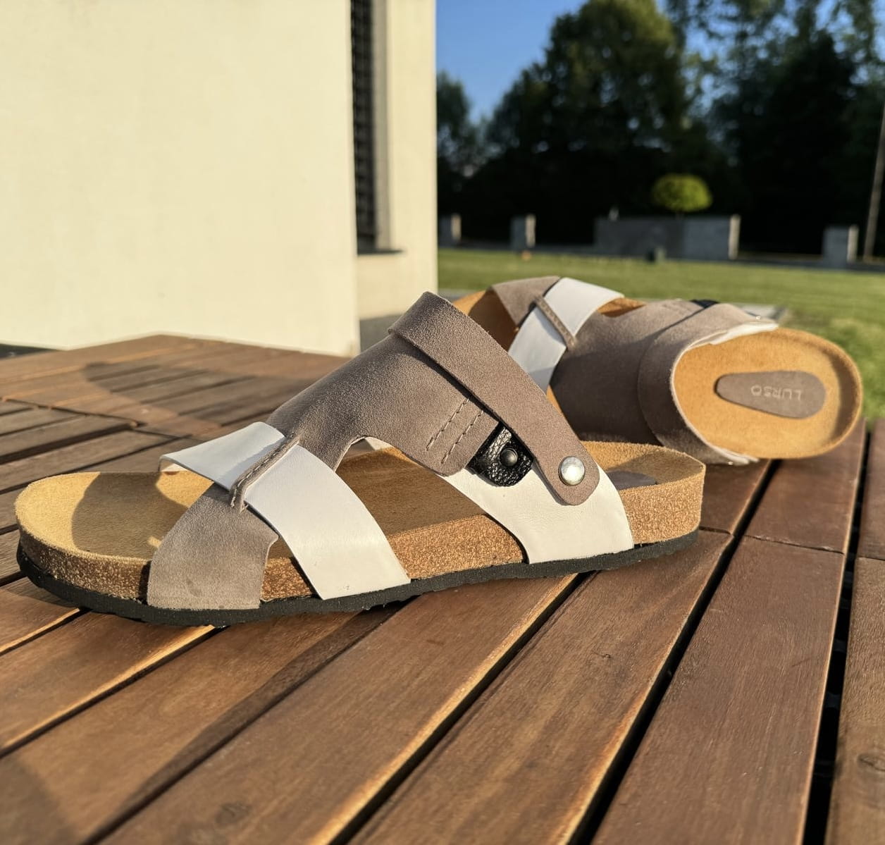 Szaro-białe Klapki Męskie LURSO model ARLES WHITE/GREY skóra naturalna