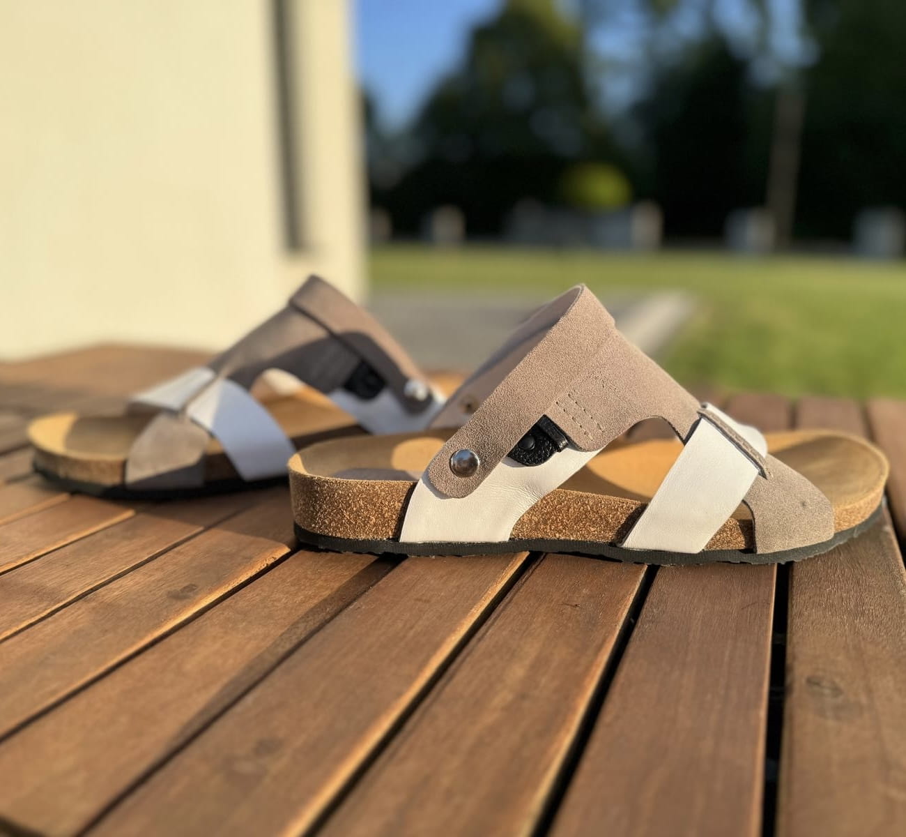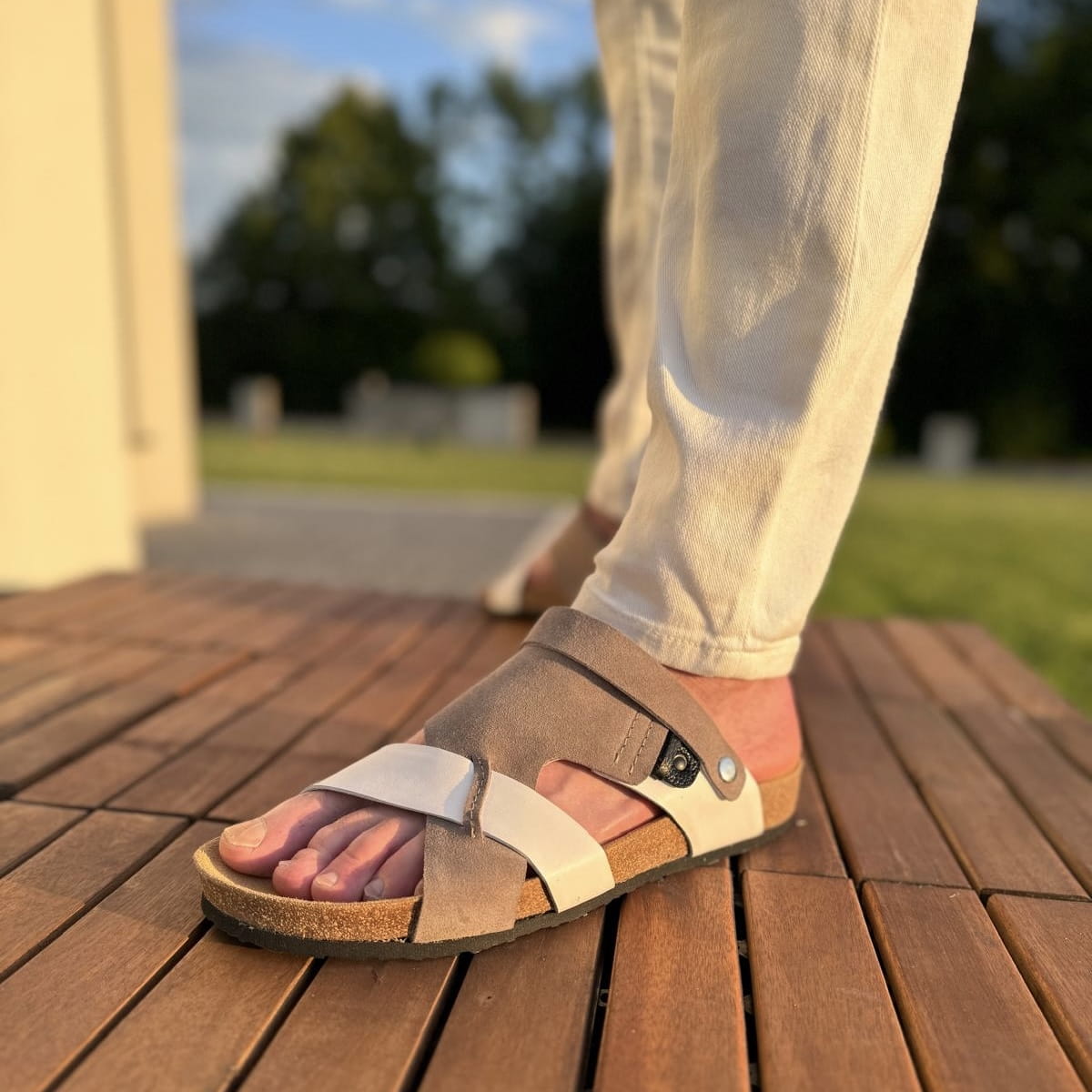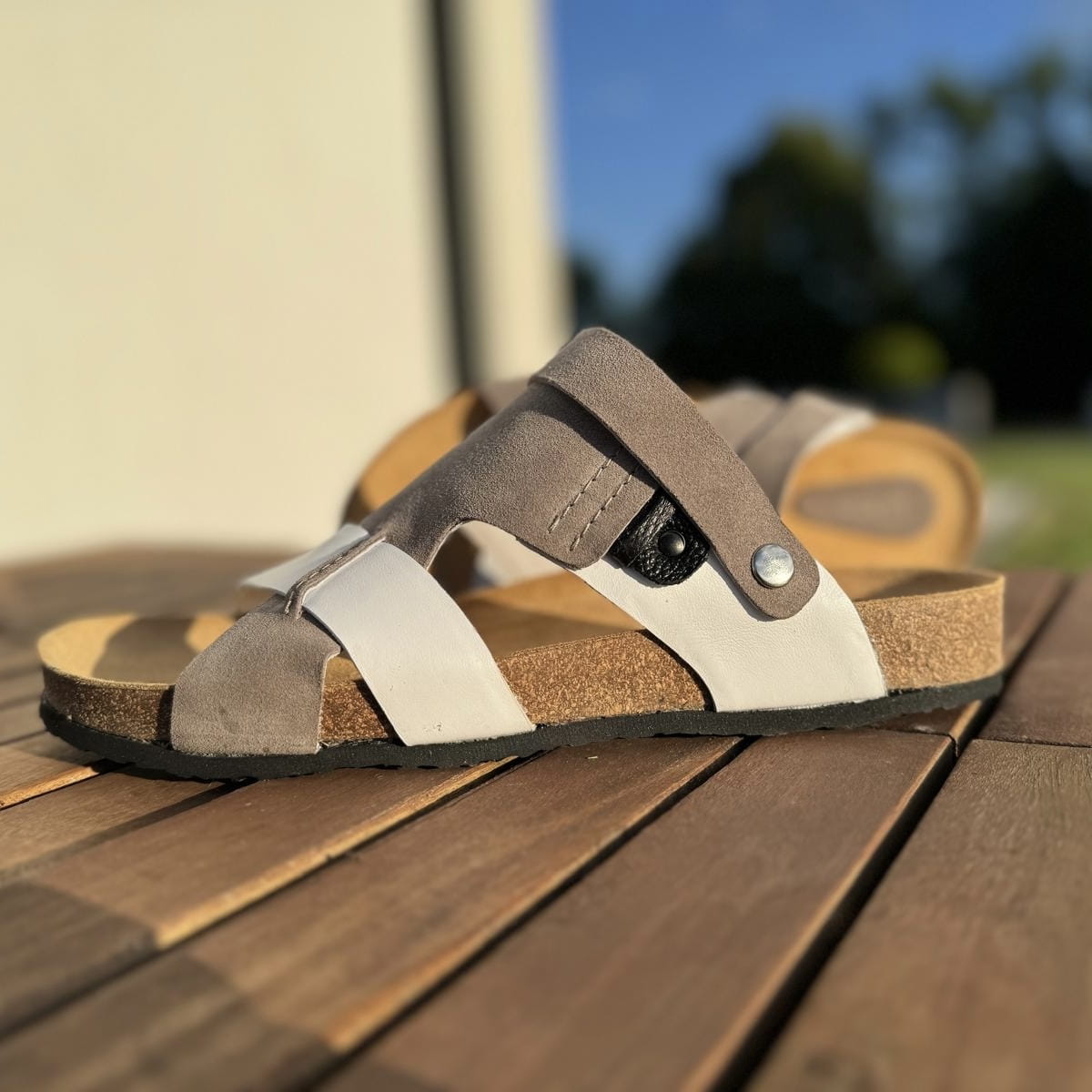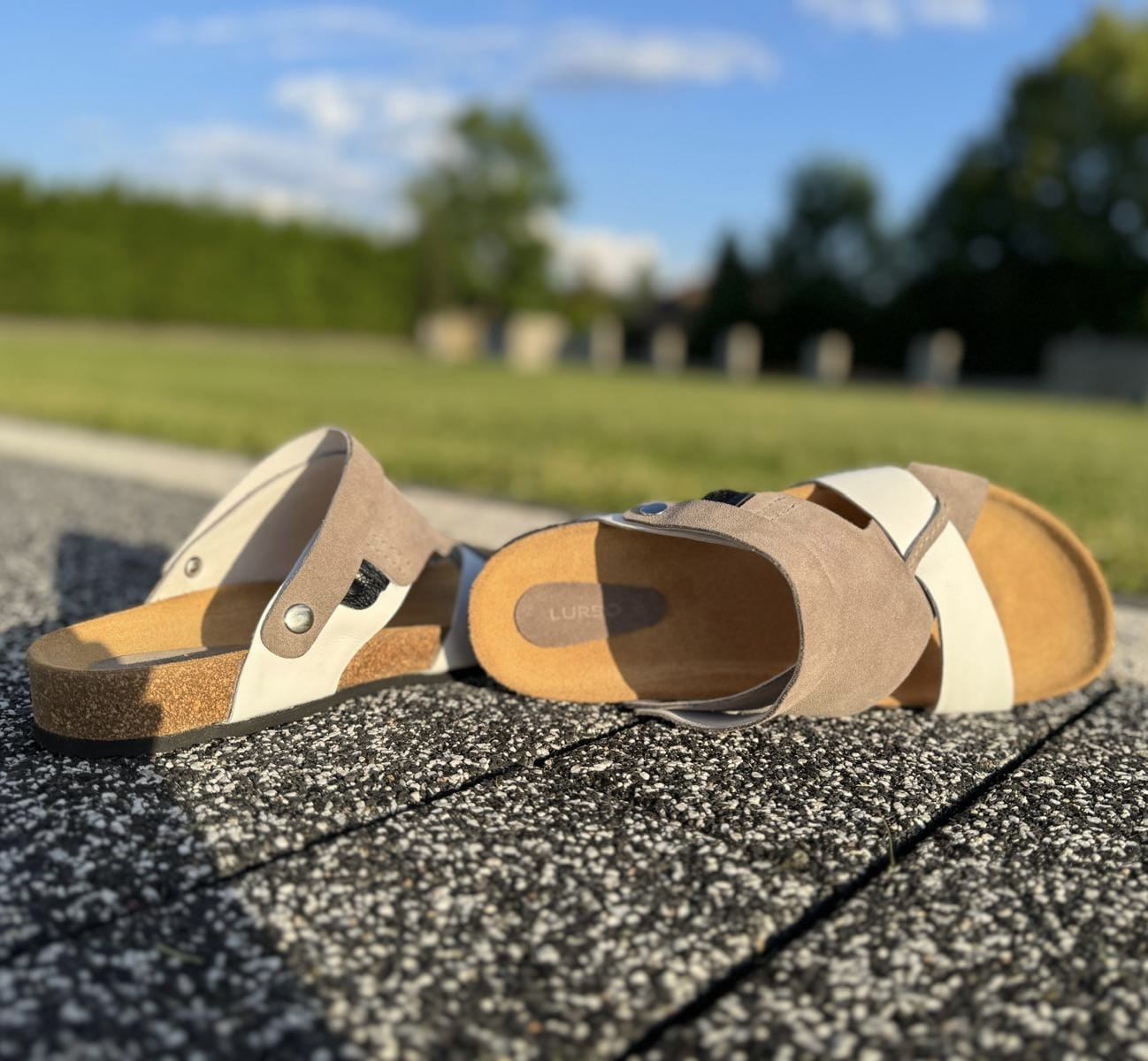 Szaro-białe Klapki Męskie LURSO model ARLES WHITE/GREY skóra naturalna