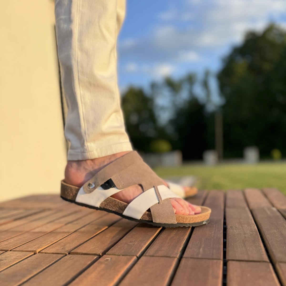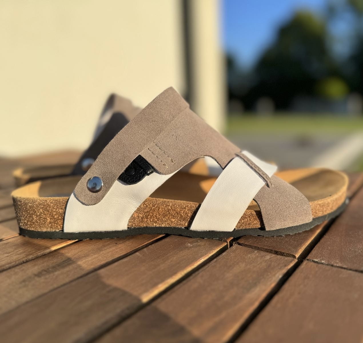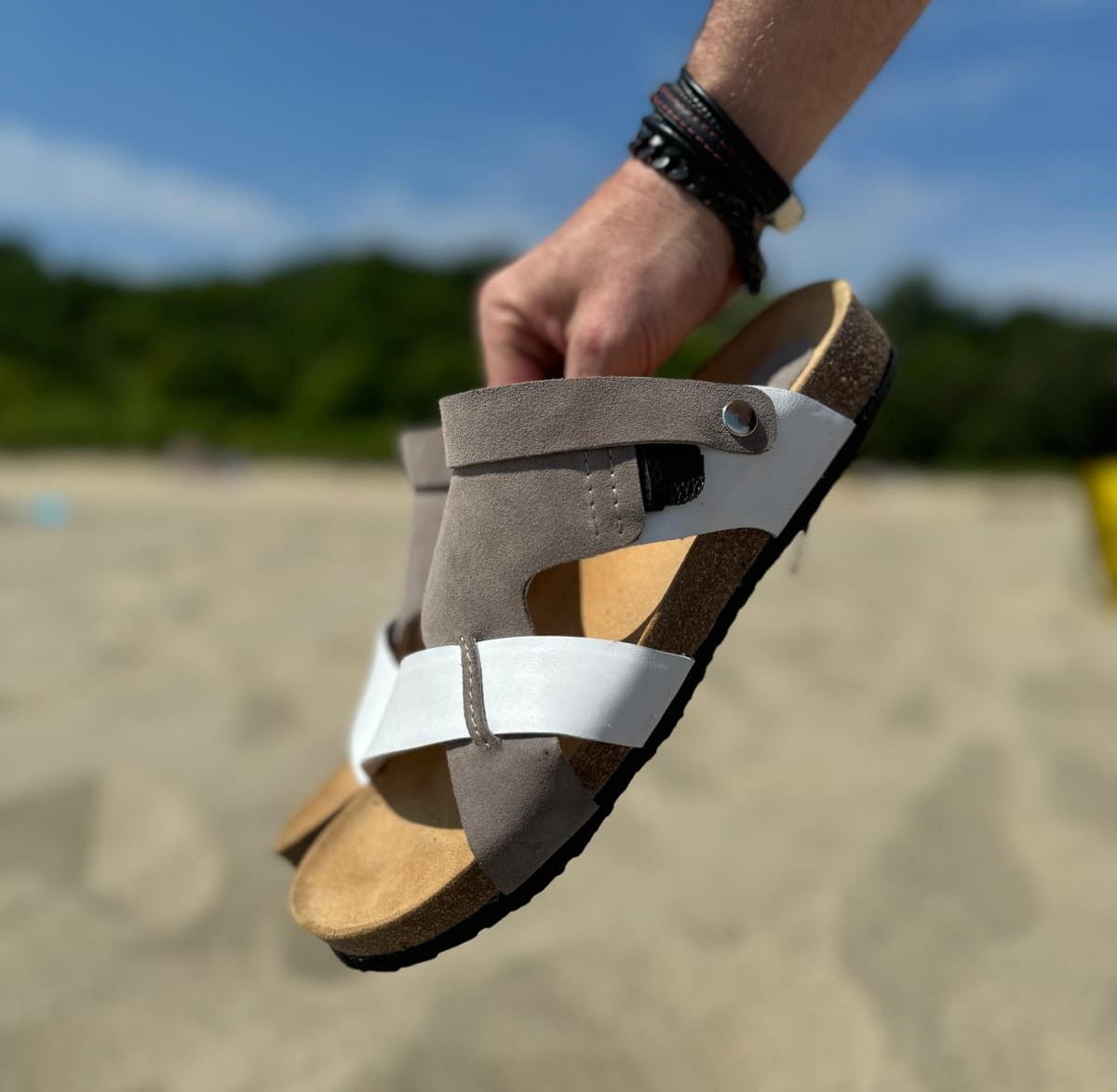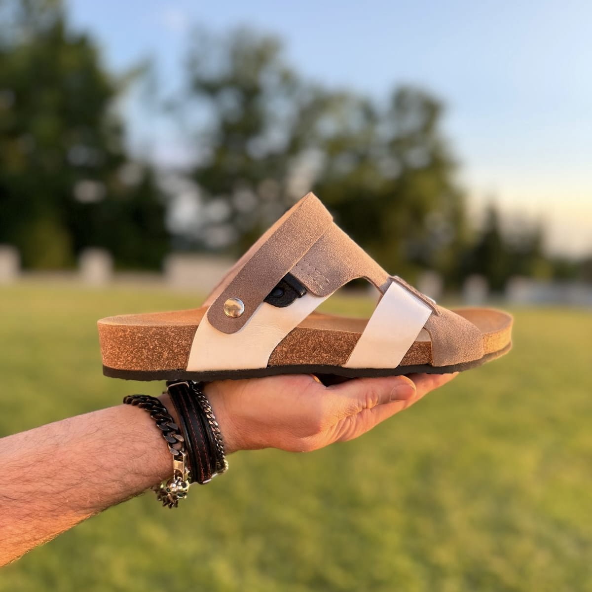 Szaro-białe Klapki Męskie LURSO model ARLES WHITE/GREY skóra naturalna