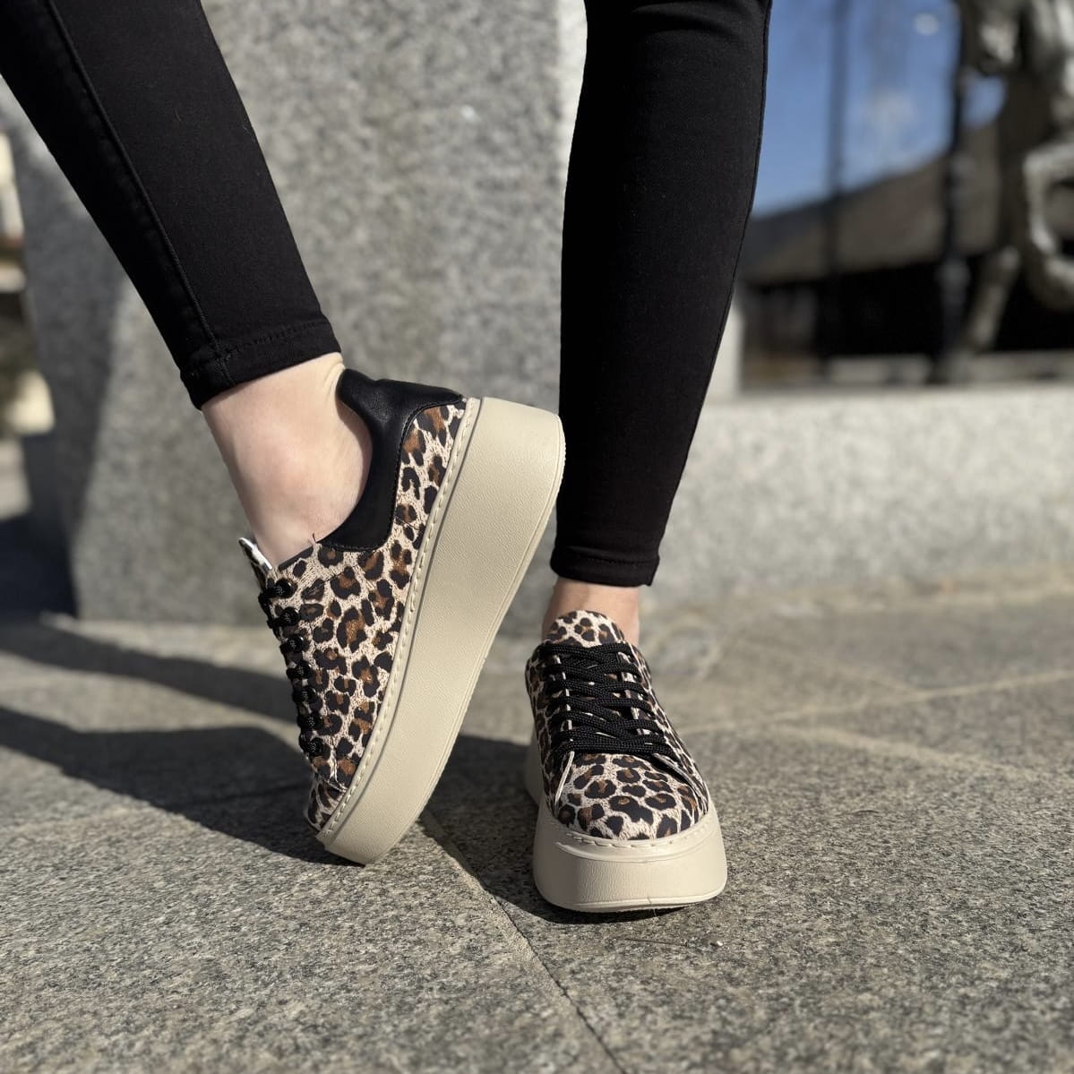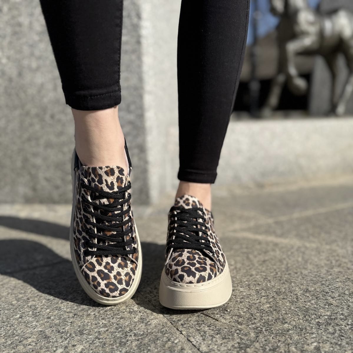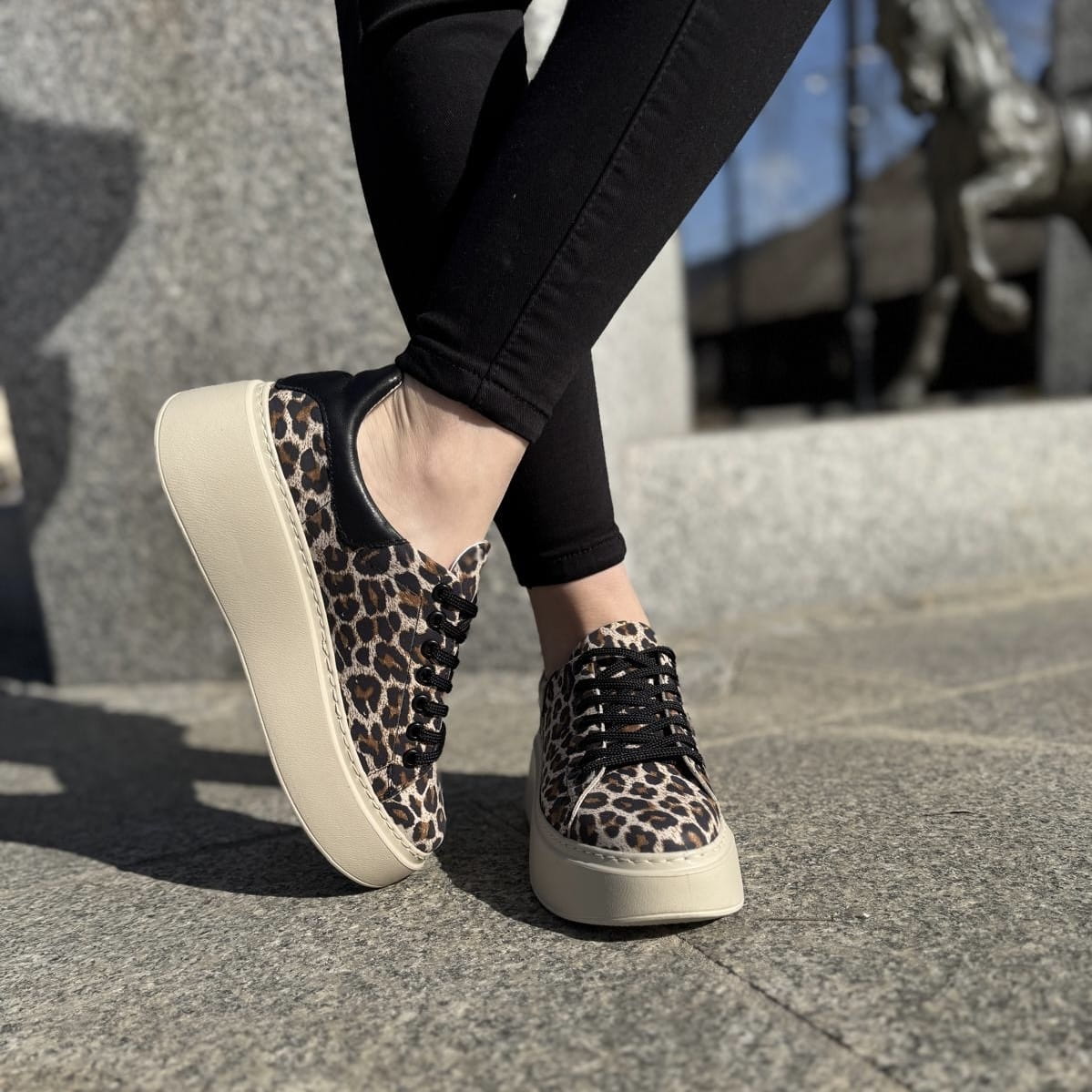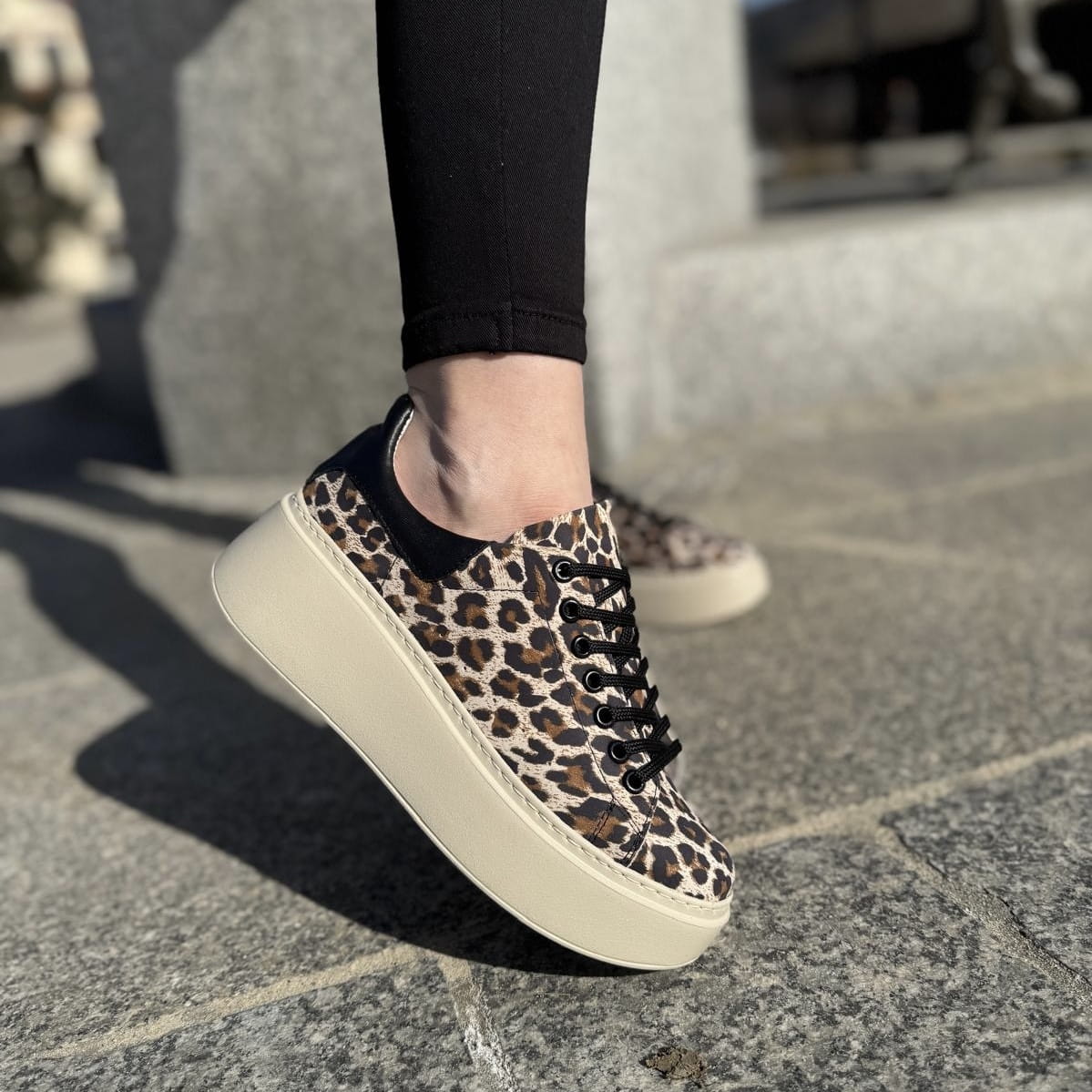 Trampki Damskie w panterkę LURSO na platformie model ARLETTE LEOPARD BEIGE skóra naturalna