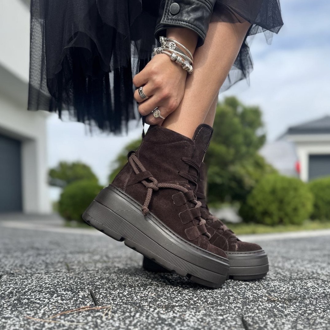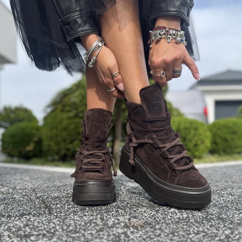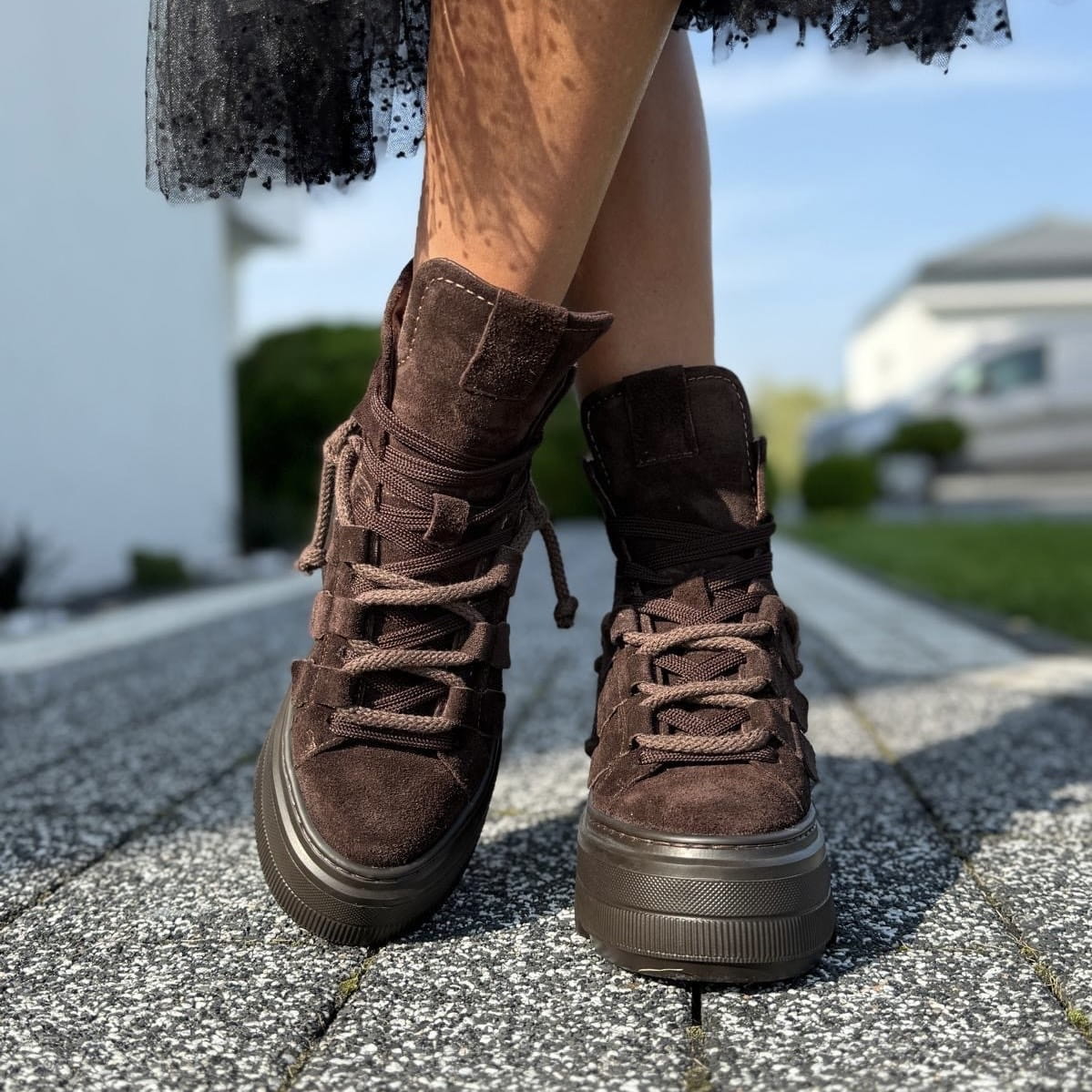 Bardzo wygodne wyższe czarne sneakersy model Talla Chocolate Brown.