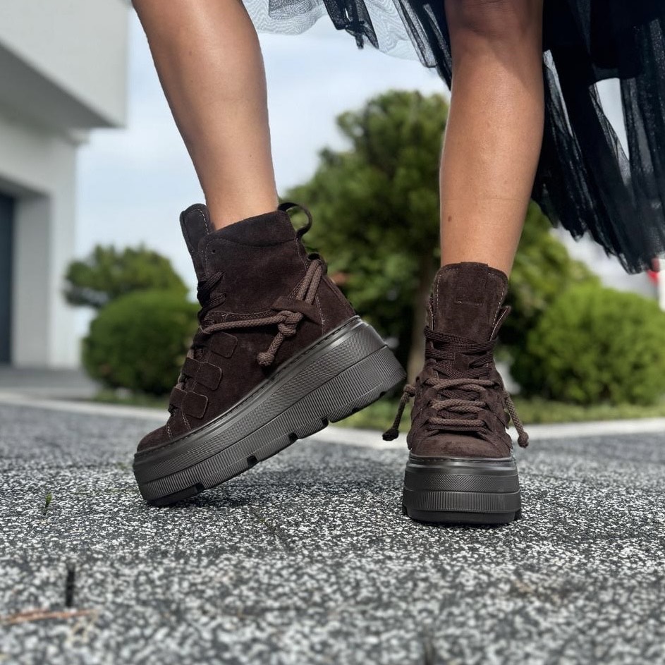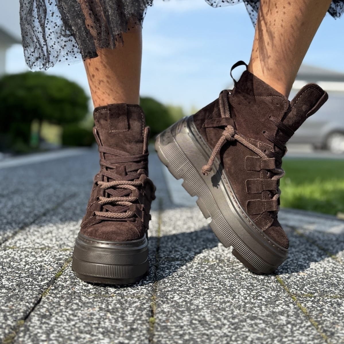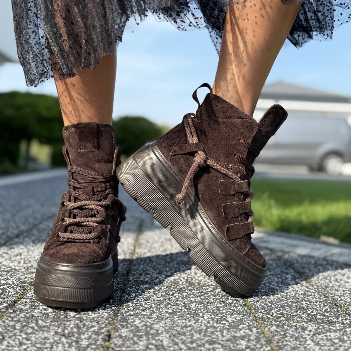 Bardzo wygodne wyższe czarne sneakersy model Talla Chocolate Brown.