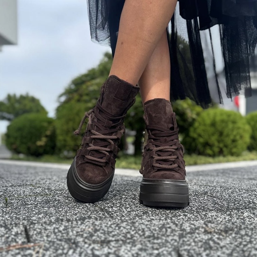 Wyższe Czekoladowe Sneakersy Damskie LURSO model TALLA CHOCOLATE BROWN skóra naturalna