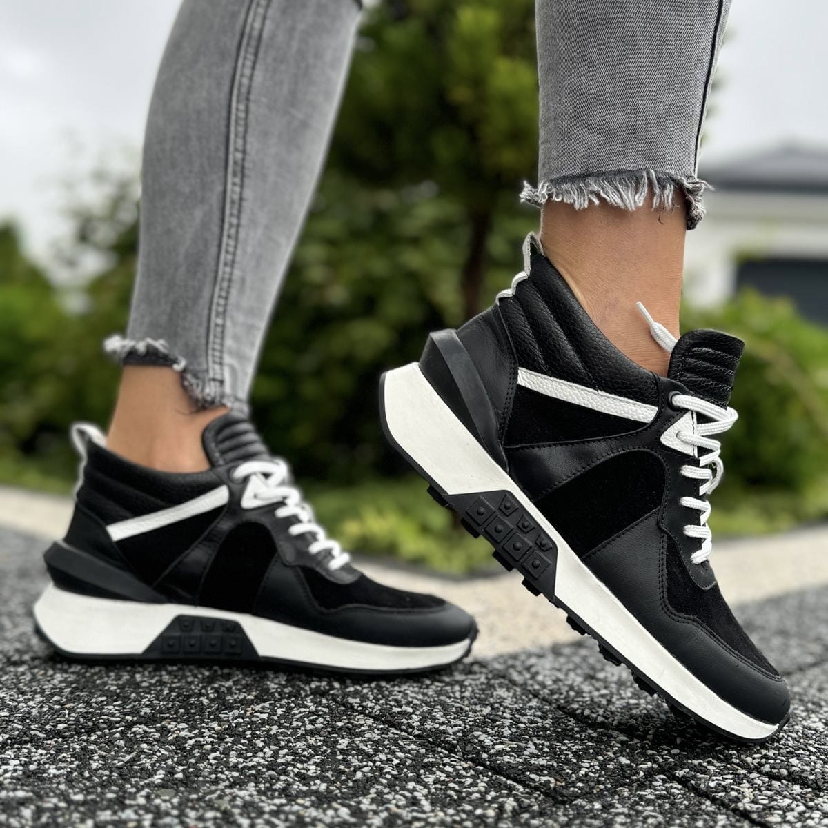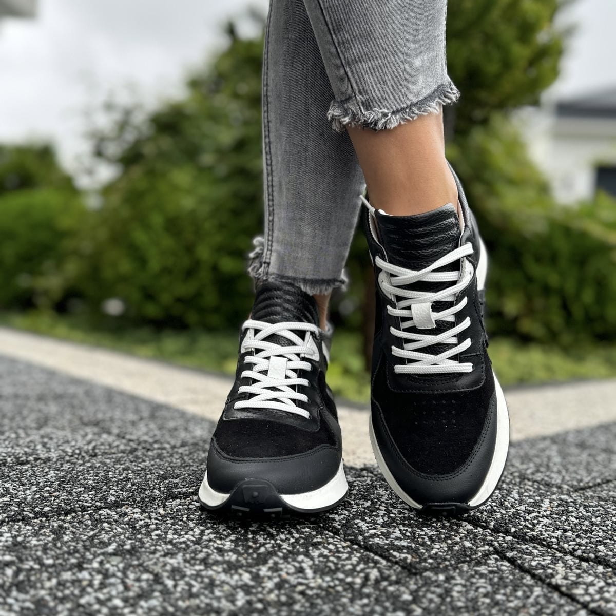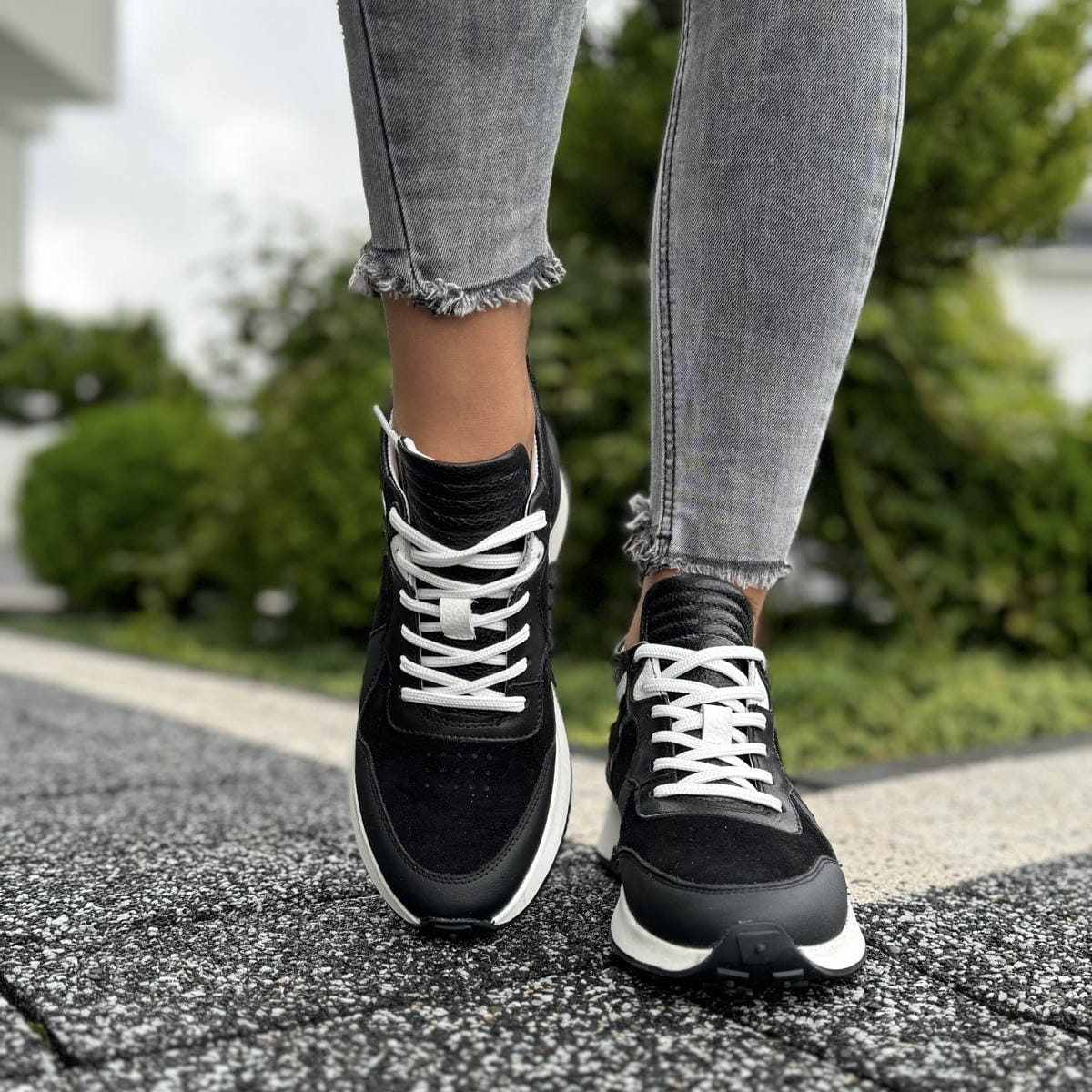 Wyższe czarno-białe Damskie Sneakersy LURSO model TONARA BLACK/WHITE