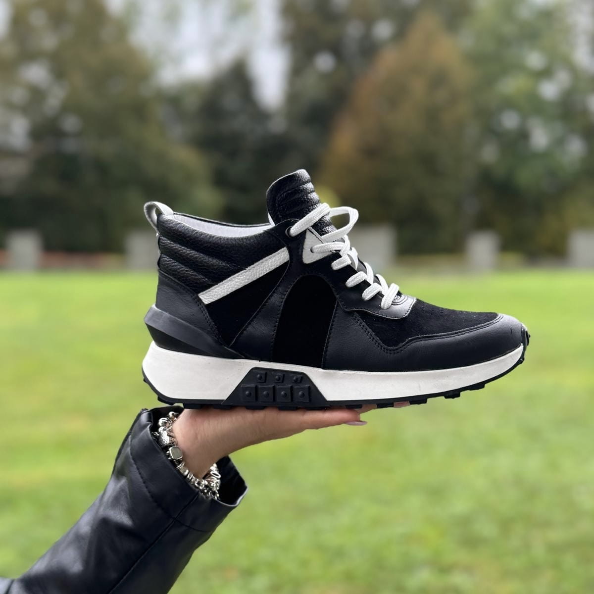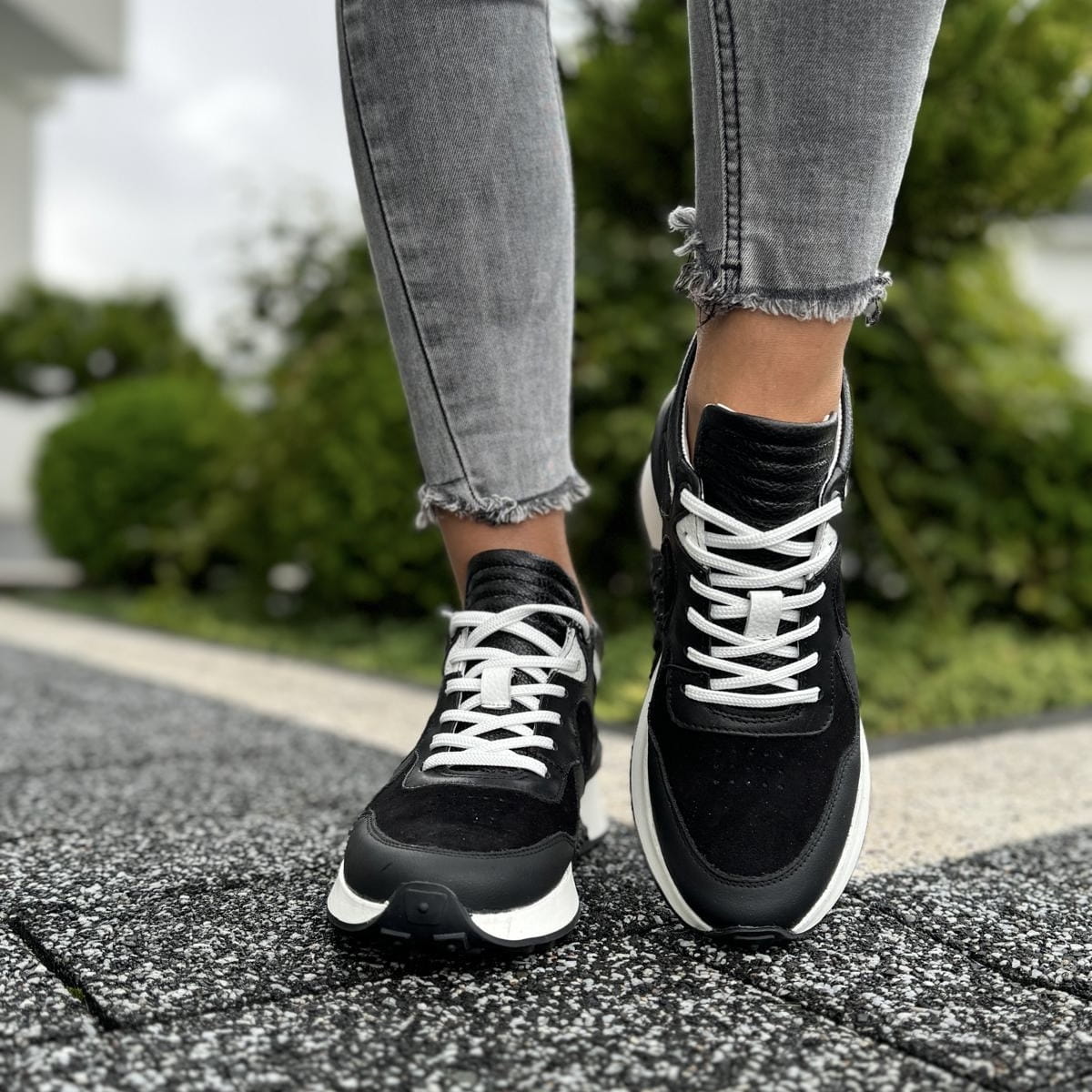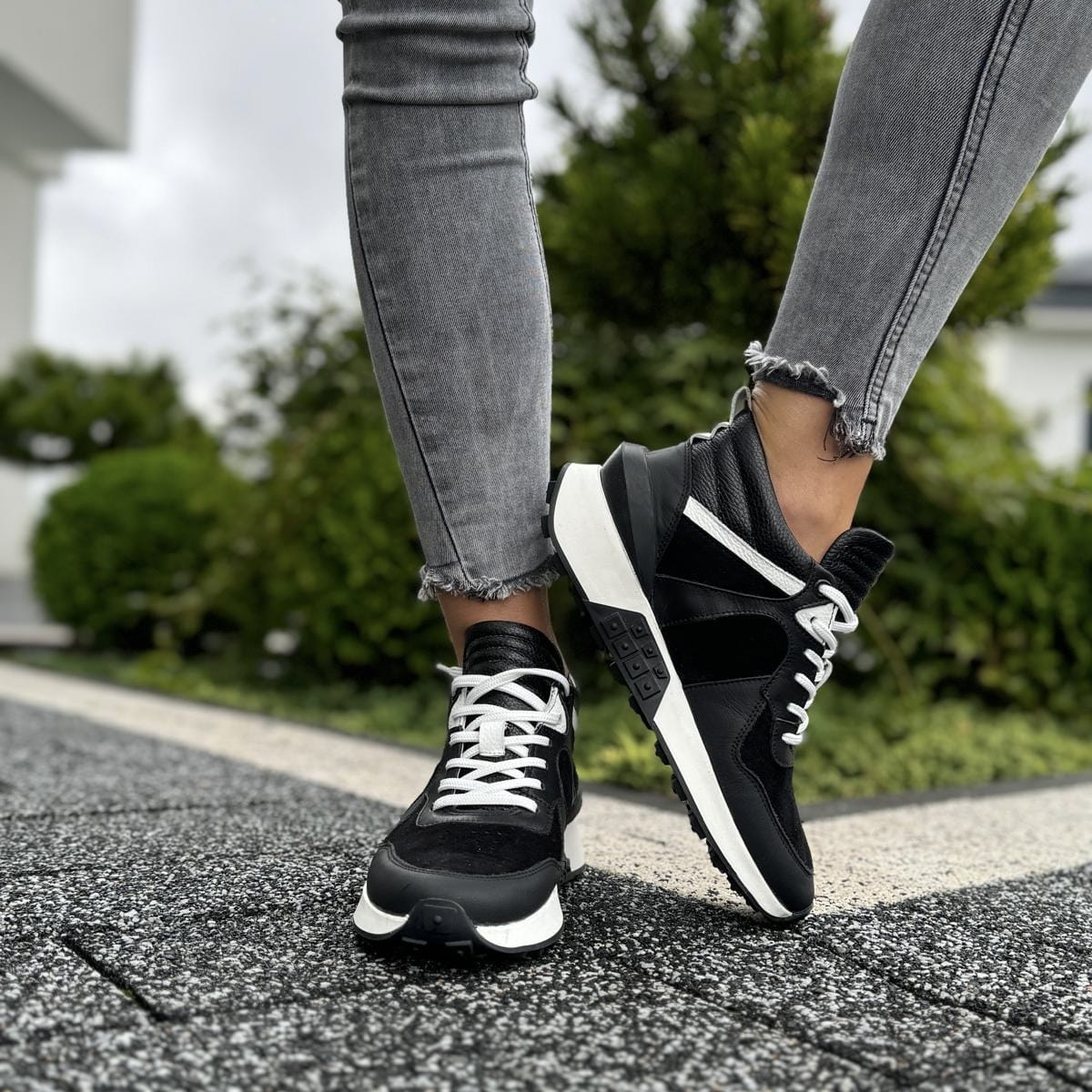 Wyższe czarno-białe Damskie Sneakersy LURSO model TONARA BLACK/WHITE