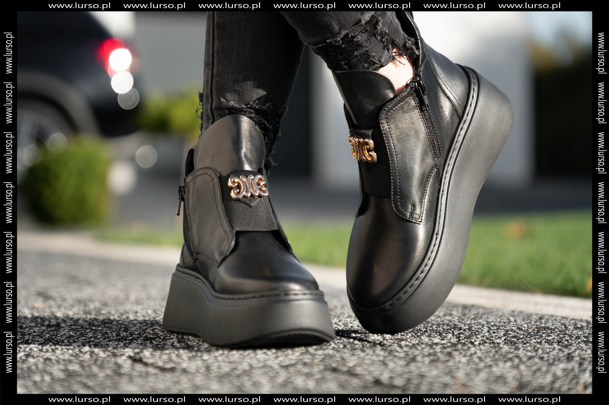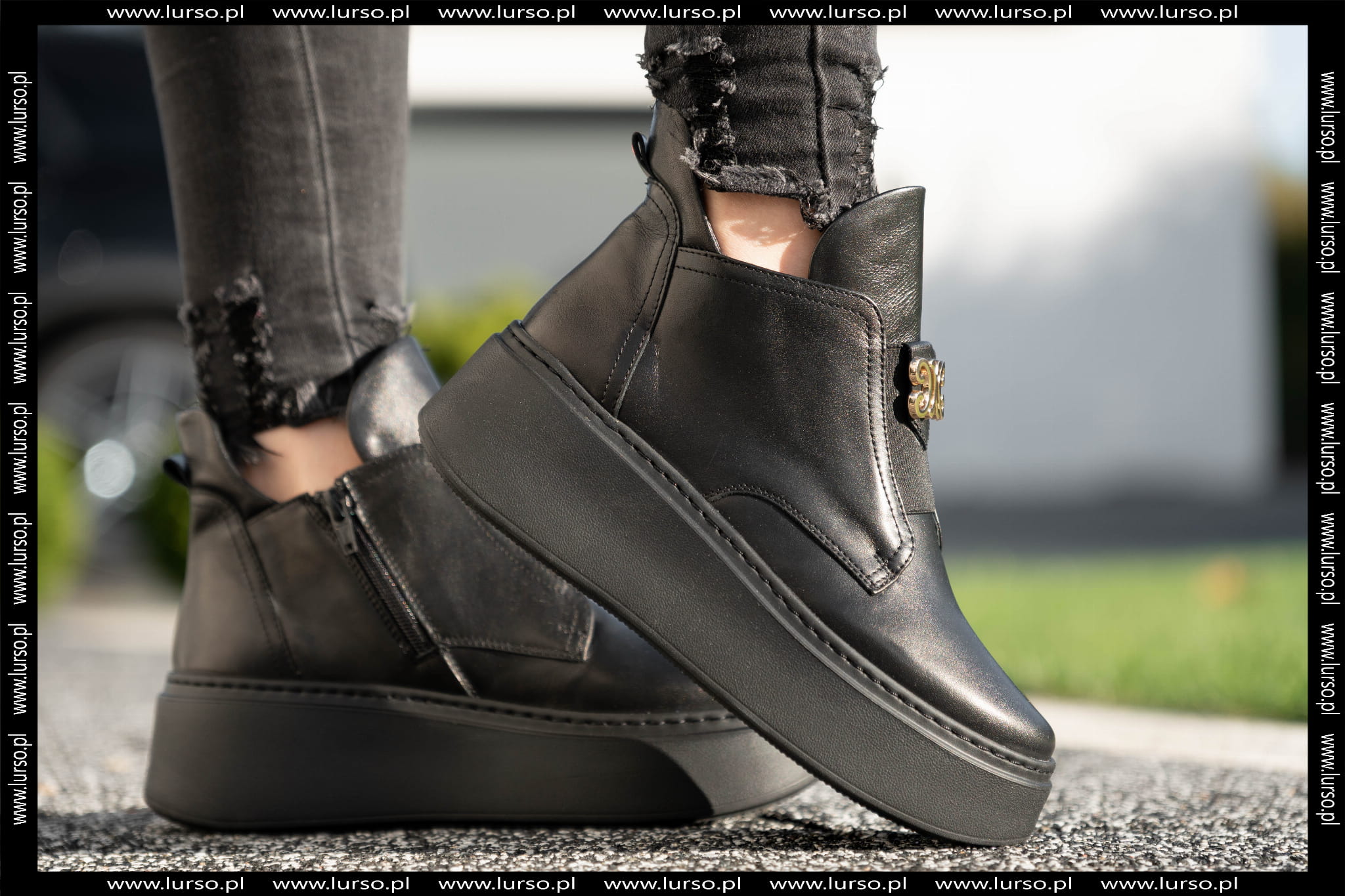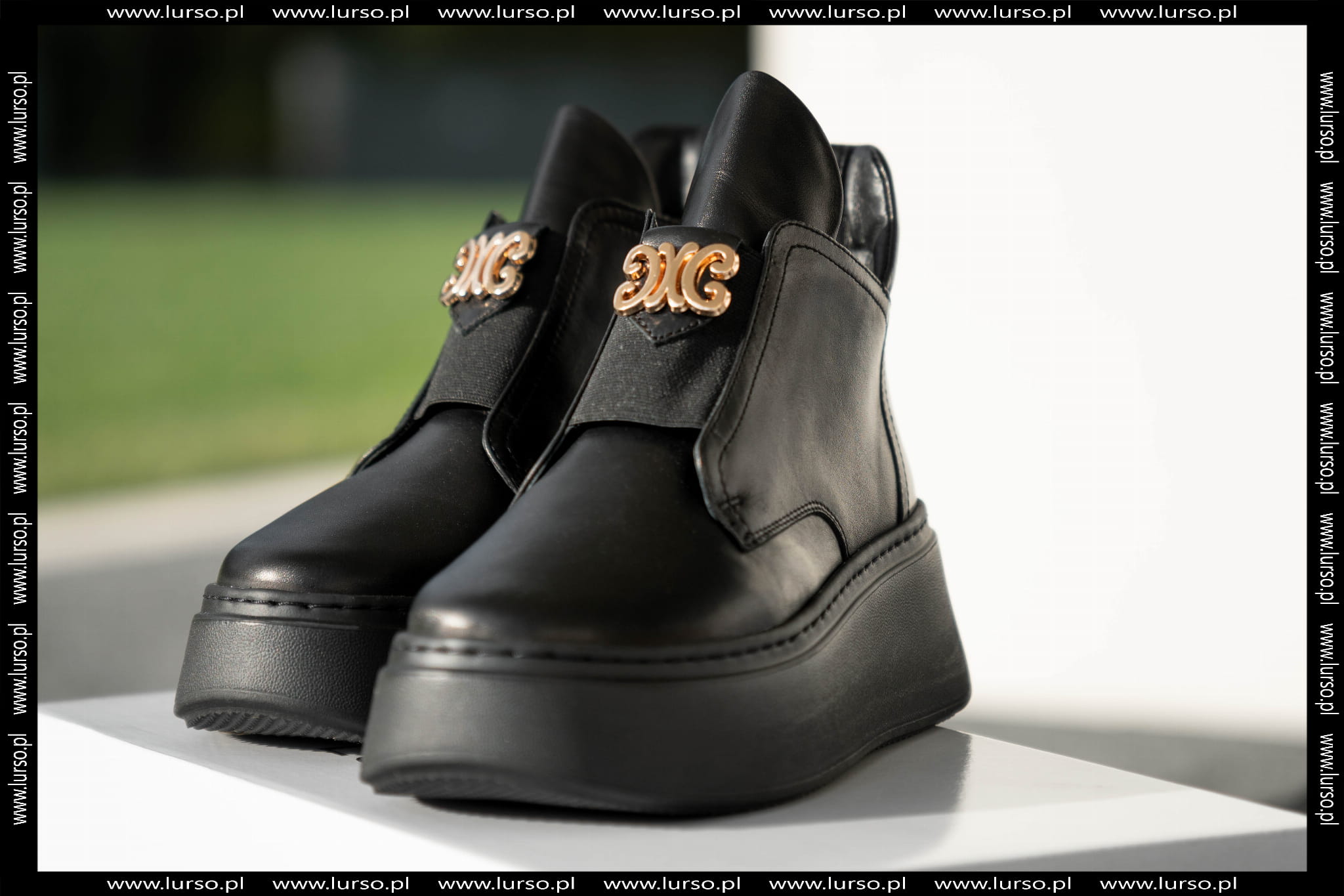 Wyższy Czarny Sneakers LURSO model ELLA BLACK