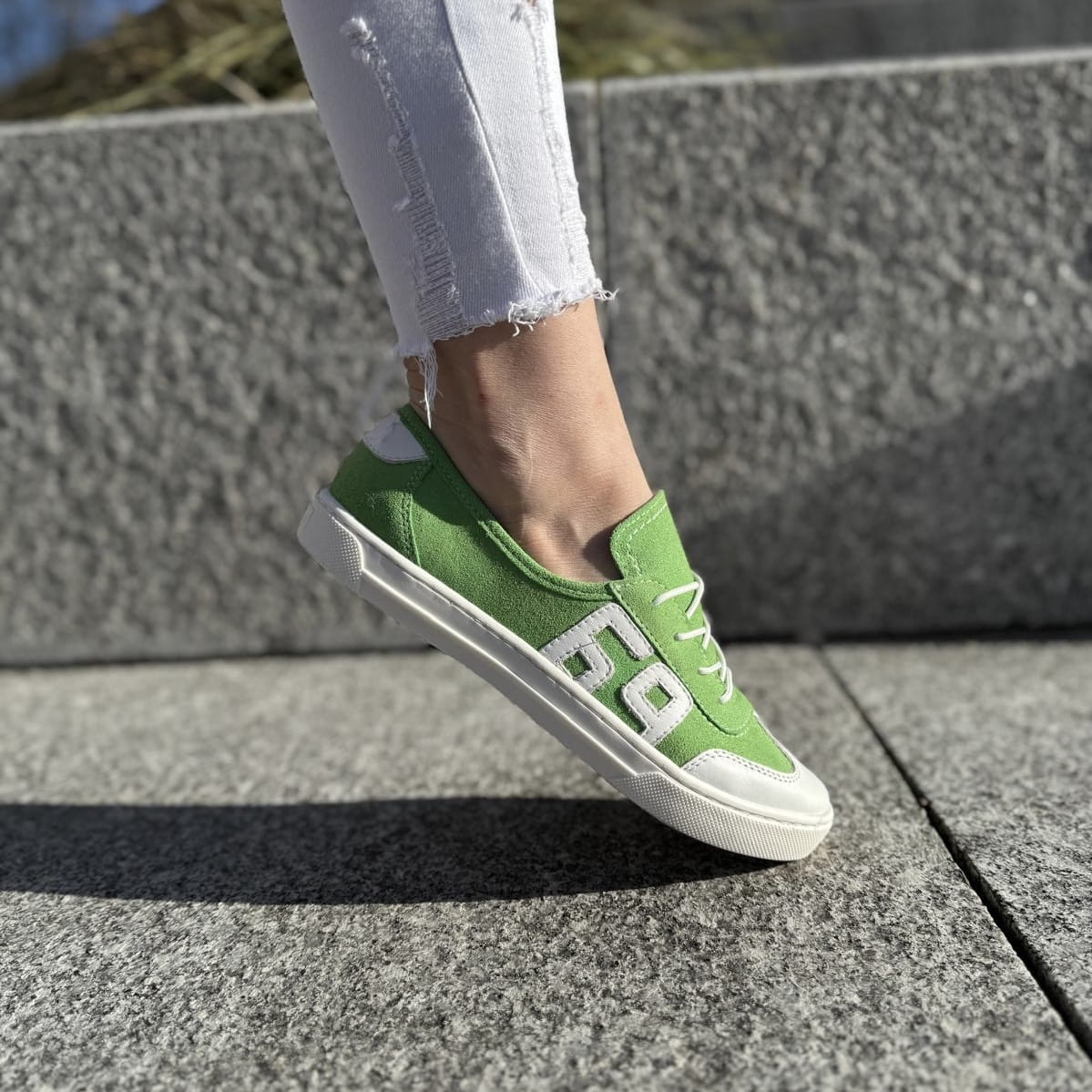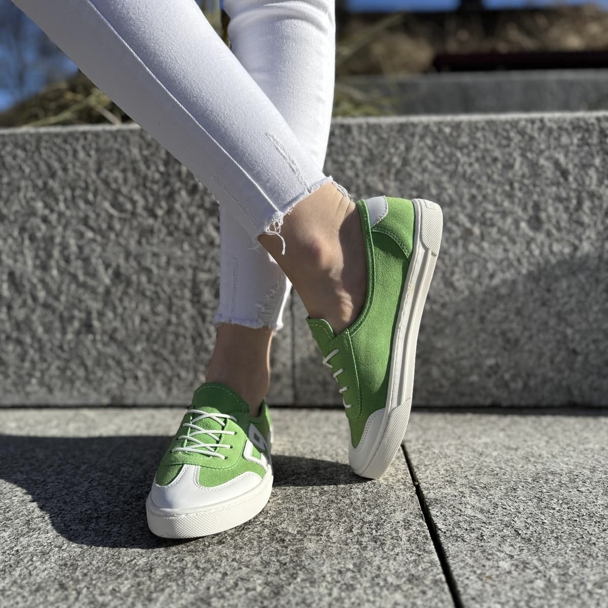 Zielone Trampki Damskie na płaskiej podeszwie LURSO model ALGHERO GREEN skóra naturalna
