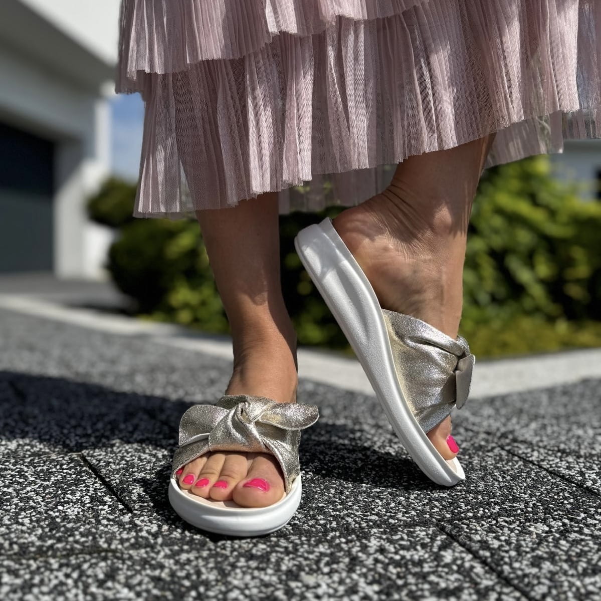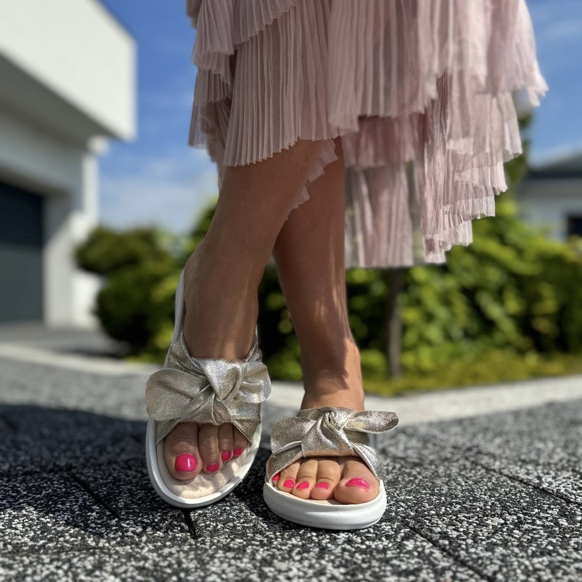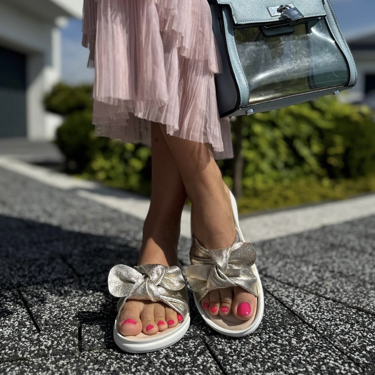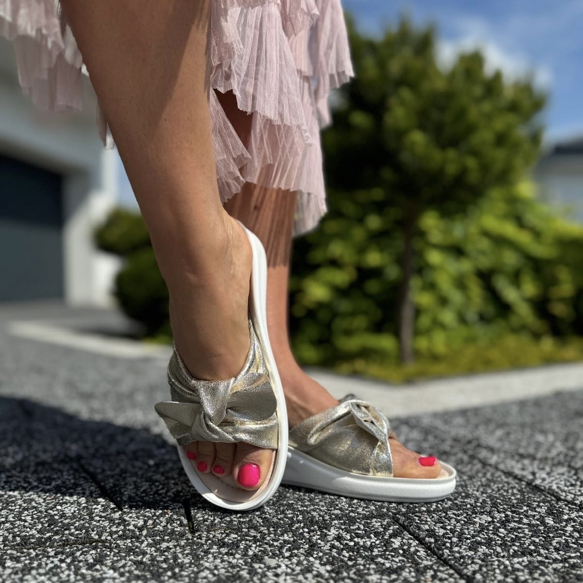 Niska koturna gwarantuje wygodę i stabilność, dzięki czemu możesz cieszyć się nimi przez cały dzień – od spacerów po mieście, po spotkania z przyjaciółmi czy letnie wyjścia. Klapki AVELLA GOLD to uniwersalny wybór, który podkreśli Twój wyjątkowy styl i doda odrobiny luksusu do każdej garderoby.
